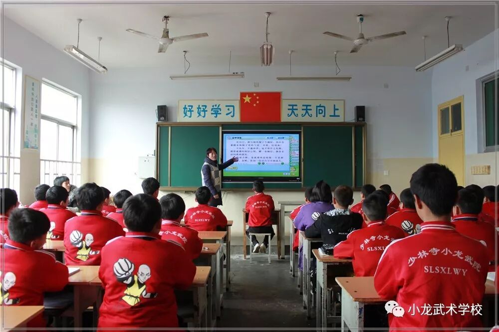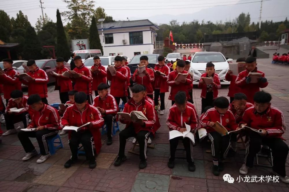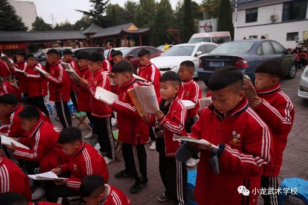 登封市少林小龙武术学校2019-2020学年上学期文化课开学两个多月来,全体师生勠力同心、教学相长,所有课程如火如荼的有序进展,按照教学大纲和教学计划基本完成了教学任务,正在迎接期中考试的到来。文化课堂上,教师悉心执教,耐心讲解,倾情灌注,不厌其烦;学生目不转睛,聚精会神,全面汲取,不遗余力。武术教练也紧密配合,利用晨读时间组织学员们朗读课文、熟练掌握文化课本知识,为期中考试奠定坚实的基础。希望小龙学子们:珍惜时间多努力,不负秋光不负己,沉着冷静上考场,争取收获好成绩。