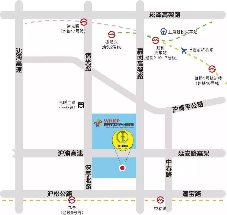 世界手工艺产业博览园地处虹桥商务区,与进博会永久会址国家会展中心相邻仅两公里。未来,也将融入虹桥商务区文化发展战略,共同开发“大虹桥世界级文化雕塑公园”等。