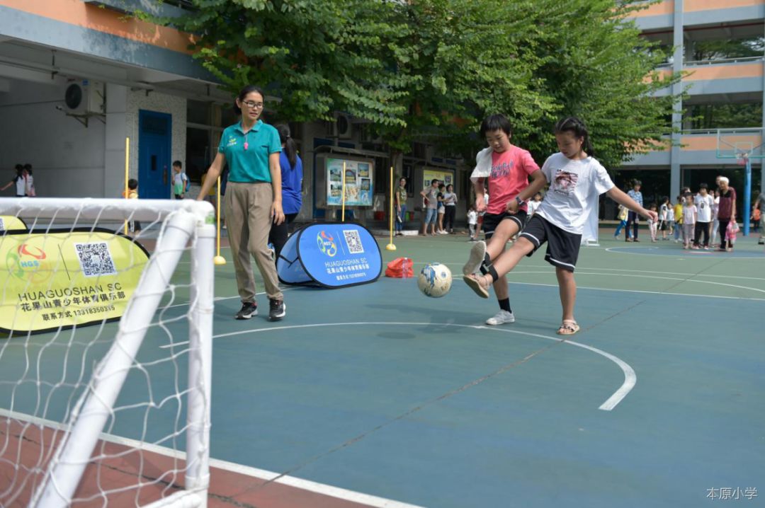孩子们一招一式颇有专业足球员风采,大家笑容满面,尽情享受着足球运动带来的乐趣。此外,赵晓芸校长在百忙之中也抽空莅临本次活动,与肖荣华校长、何丽芳副校长一睹孩子们的运动风采。