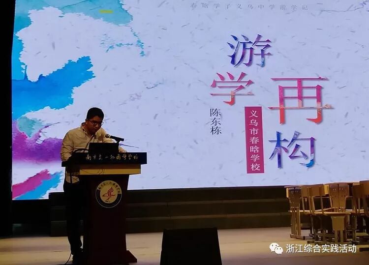 义乌市春晗学校的陈东栋老师做题为《游学记再构》的说课。陈老师以该校组织开展的一次游学活动为基础,紧扣综合实践活动四个目标,通过教师指导再构,细化游学方案;学生活动再构,优化游学过程;学生成果再构,深化游学成果展开分享。以游学记活动为例,经过师生深度再构,让教师引导更有方向性,学生的主体地位充分展现,成果展示更多样化。
