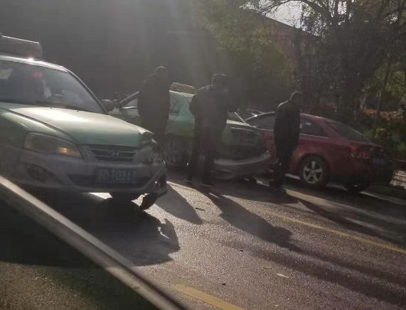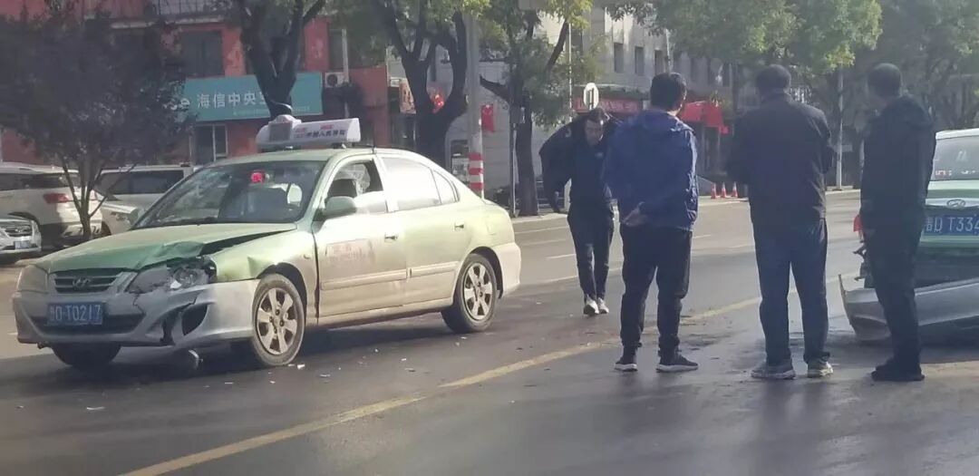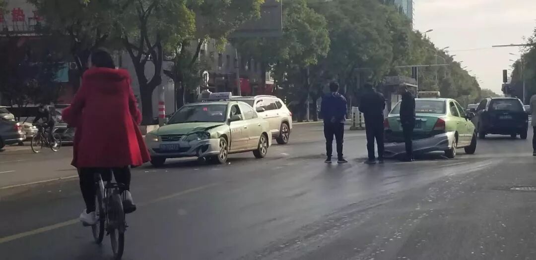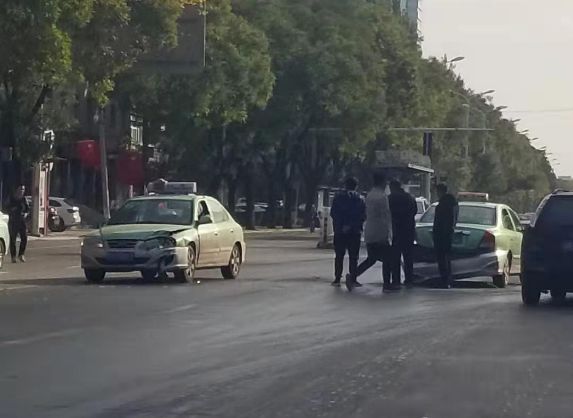 10月26日下午,长治市大庆路(威远门路)路段两辆出租车发生碰撞,两辆车的车头、车尾都已经完全变形。