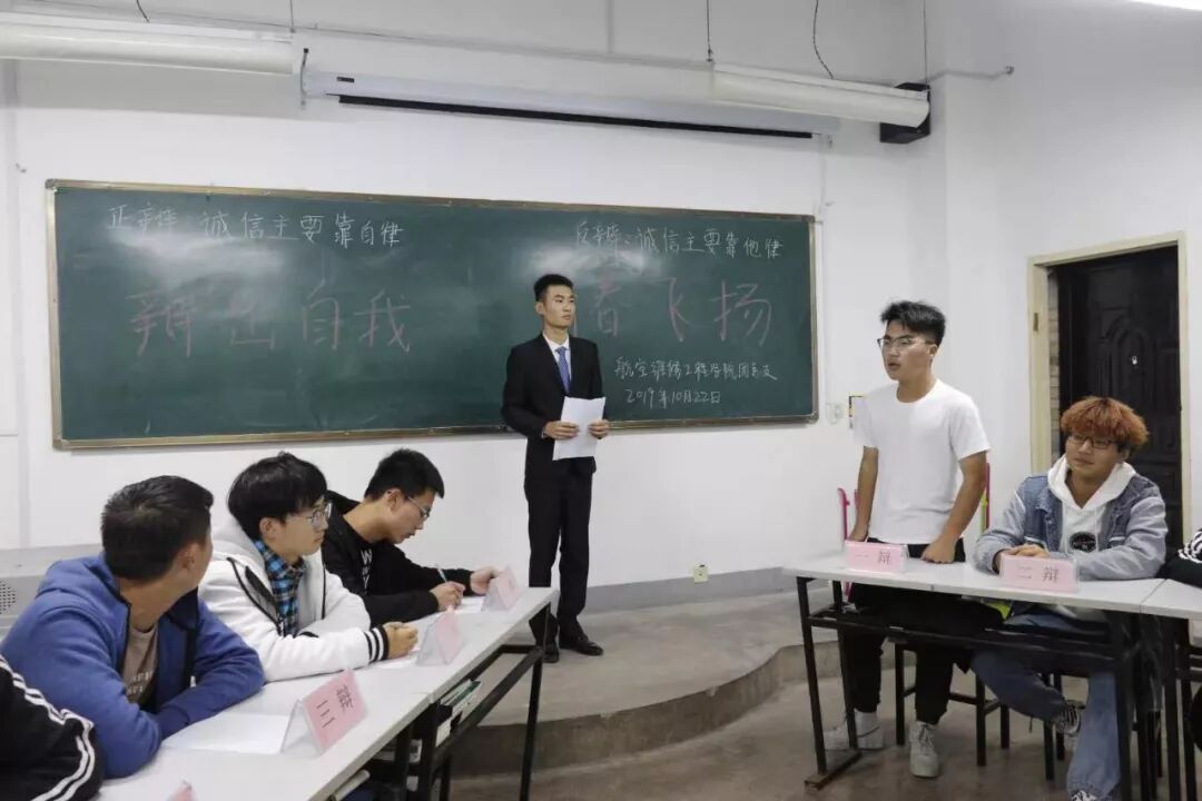 团总支系列活动|“迎新杯”辩论赛初赛—— 一场没有硝烟的战争为了展示大学生的青春风采,发扬丰富的校园文化,激发学生自主思考的能力。2019年10月22日航空维修工程学院团总支于东区2201、2202教室举行“迎新杯”辩论赛,本次比赛评委由团总支干事徐子豪、马立文、朱晨玮、和思宇、袁庚担任。参赛成员为航空维修工程学院19级各班辩论队。02