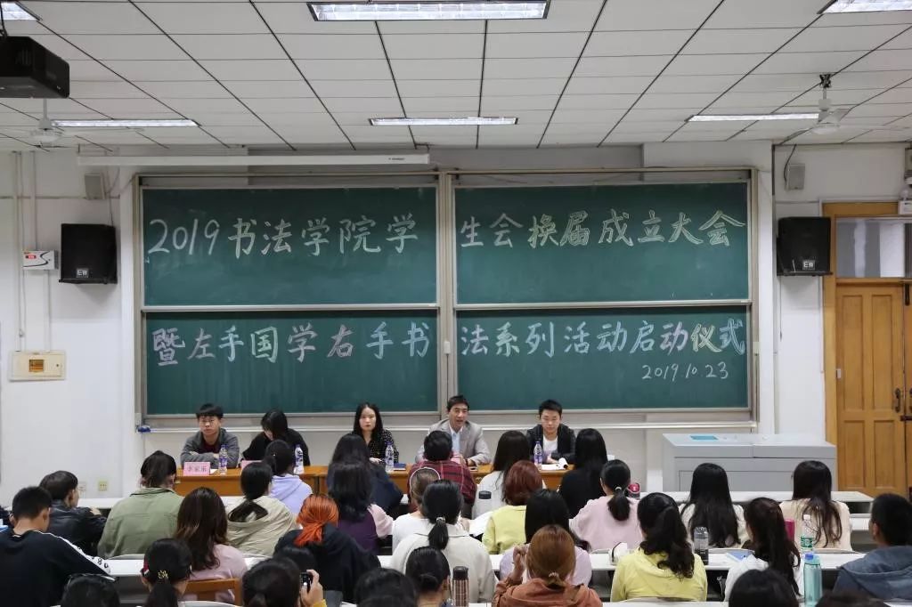 根据我院团委学生会的工作安排,10月23日下午4点30分,我院在综合楼306教室举行了2019年团委学生会及社团换届成立大会暨左手国学右手书法系列活动启动仪式。出席会议的有:党委副书记胡乃永、本科生辅导员邱金芝、辅导员助理宫兆冬、2018届学生会主席孙华昱、2018届团委副书记李家乐以及2019届学生会全体成员。本次会议由邱金芝老师主持。