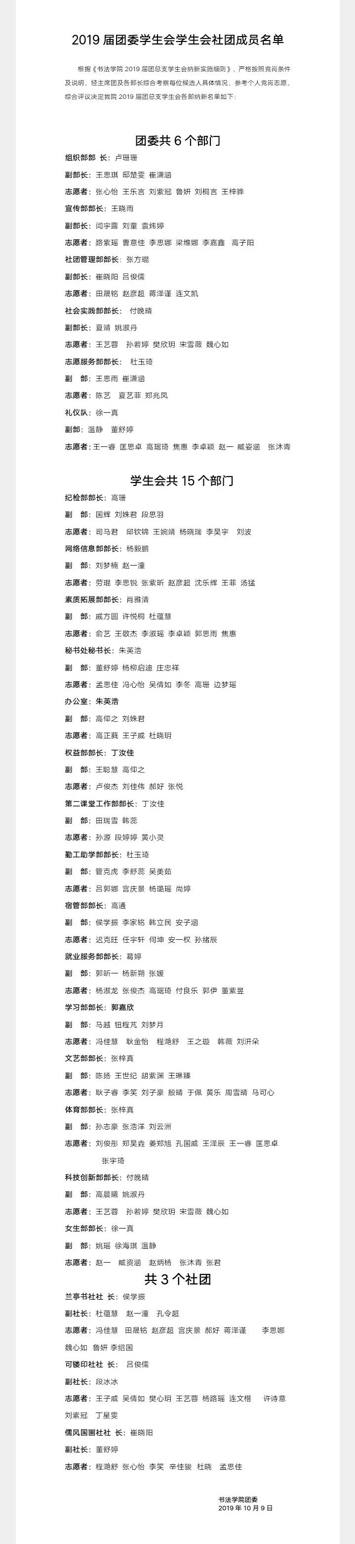 秘书长朱英浩向各位同学宣读团委学生会社团成员名单。