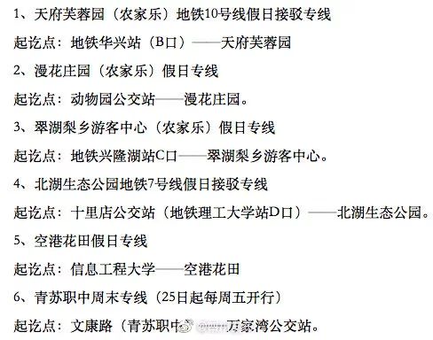 周末要赏花徒步的市民注意了!成都公交集团25日起陆续推出6条假日专线,其中5条从26日起周末、节假日开行。(四川发布)