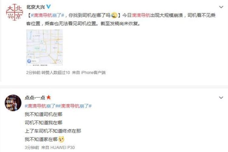 滴滴导航出现大规模崩溃 司机、乘客相互找不着
