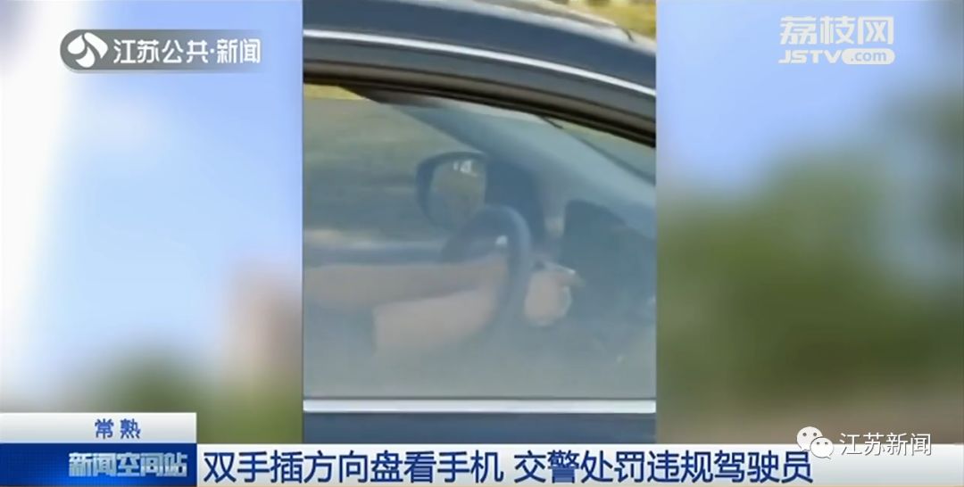 10月15日下午,江苏苏州常熟有网友发现,相邻车道一名司机的双手插在方向盘中间,存在使用手机的嫌疑。