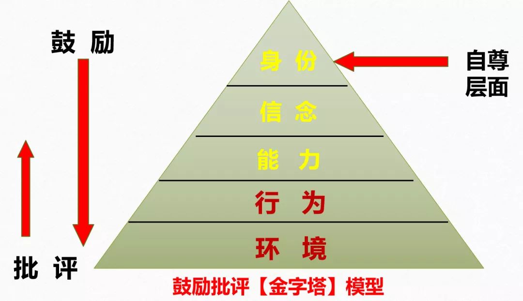 ■ “金字塔”模型:家长在批评孩子的时候,到行为层面,而鼓励孩子的时候,尽可能到自尊层面。