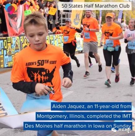 近日,美国一名11岁男孩雅克用5年的时间跑完了美国50个州的半程马拉松赛事,实现了自己的愿望。