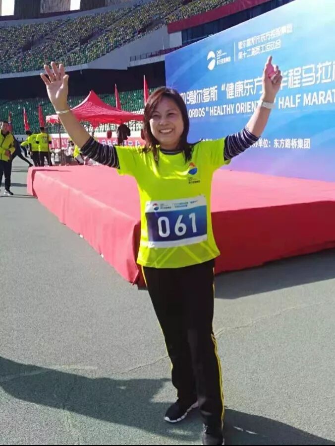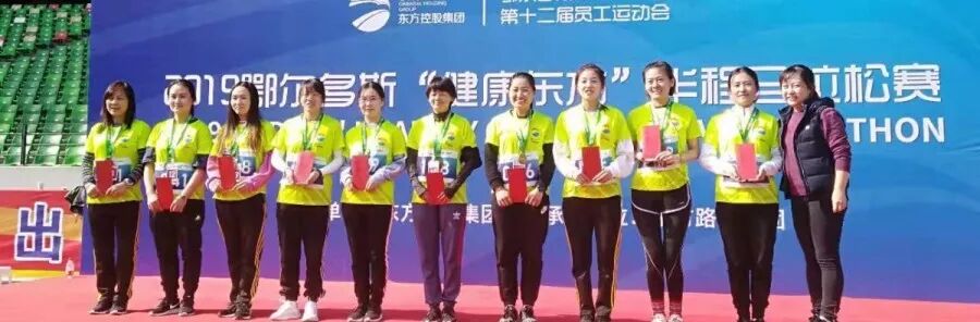响应全民健身号召,推进健康东方理念,促进员工身心健康,2019年10月21日,东方控股集团在鄂尔多斯市体育馆举办了“健康东方”半程马拉松赛。悦生活物业12名干部、员工参加了比赛,最终8人取得较好名次。其中,东方纽蓝地项目杨卫平、高英、王水侠、柳姗、孙明悦分别取得女子组第3名、第5名、第11名、第13名、第18名,综合部靳乐乐取得第20名;阿木布和、张闯分别获得男子组第4名、第6名的好成绩。