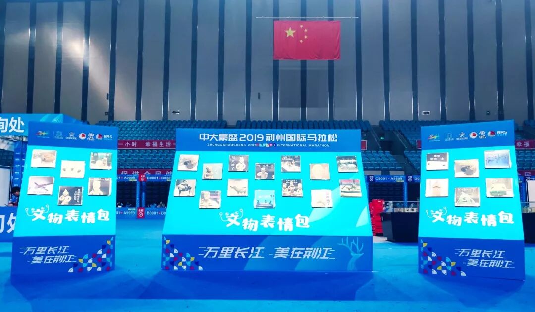 荆马的规模不算小,但荆州是个四线城市,参与马博会的品牌不算多,但体验很好。 荆州马博会一直都放在室内举行,室内的马博会无论对于赞助商,还是跑友来说体验都更好。 赞助商工作人员和跑友都不用受日晒风吹雨淋之苦,跑友们更愿意在马博会停留,拍照留念,参与赞助商的互动活动,购买赞助商的产品。赞助商工作人员也不用把物料和货品早上搬过来,晚上搬回去,省却了很多搬运之苦。 荆马跑友们领完参赛物资,都会先在领物场馆内和文物表情包合影,然后再到检测芯片展位检测芯片。