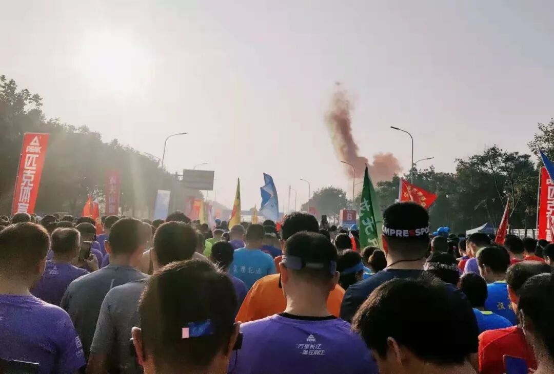 作为华南地区赛事公司的巨擘之一,博润体育一直注重赛道上的服务细节,让跑友们有更好的参赛体验。 很多赛事会让领导们站在主席台上开枪发令,但是枪声传播范围有限,后面起跑的人根本不知道比赛有没有开始,只有自己身前的人潮开始挪动,才知道比赛开始了。 荆马不仅有发令枪,在枪响的那一刻,烟雾弹也升腾而起,所有的跑友都欢欣雀跃,而不是前排的一些跑友。
