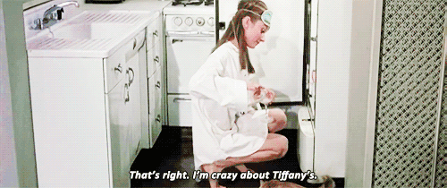 在奥黛丽赫本主演的经典电影《蒂凡尼的早餐》中,赫本穿着黑色礼服裙在Tiffany的橱窗前驻足流连吃着早餐的身影让人难忘,她有一句经典的台词,“ I’m crazy about Tiffany’s!”。电影中女孩的故事里交杂着金钱、欲望、都市、挫折和梦想,但是最终以遇见真爱、理解幸福的定义结局。从此,世界上有一种幸福,叫做Tiffany蓝,而系上象征着纯洁无瑕的白色缎带,这只知更鸟蓝色的小盒子就成了世界上格调与雅致的象征。