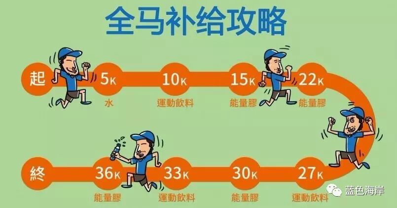 5.通常跑半程马拉松的人最好不要饮用含糖糖饮料,而跑全程的人在20公里后要适量补充含糖饮料,含能量的饮品。