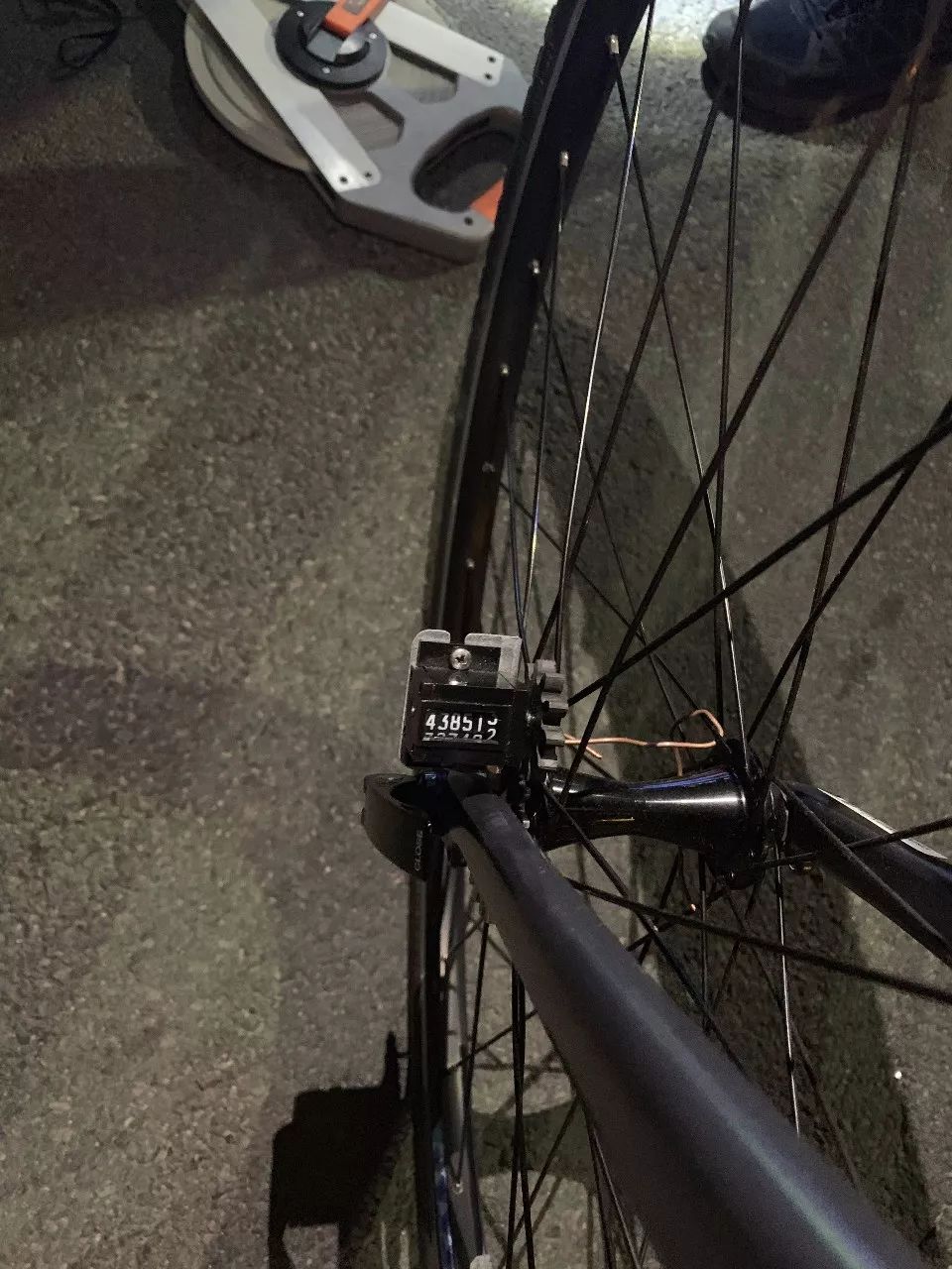 随后用自行车在尺子标注的路段内,来回骑行四次后,取平均数,输入测量仪。以该数值为参照基数去丈量和计算整条赛道。