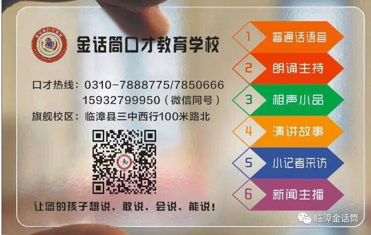金话筒口才教育学校成立于2013年,专注于青少儿口才教育,是我县唯一一家全国青少儿口才考级定点学校。我校秉持“用心教育、以爱育人”的办学理念,助力青少儿综合素质的提升。学校拥有专业的师资团队,一流的教学设备以及优美宽敞的教学环境,为学员及家长提供优质的教学服务,办学六年来,深受家长和社会各界好评。近年来,我校荣获“最具品牌影响力奖”、“全国十佳名校奖”、“艺术教育人才基地奖”、“艺术教育摇篮奖”等殊多奖项。2018年,经北京总部批准,金话筒口才教育学校将作为我县唯一一家青少儿口才考级独立测试站,负责开展我县口才考级工作。。