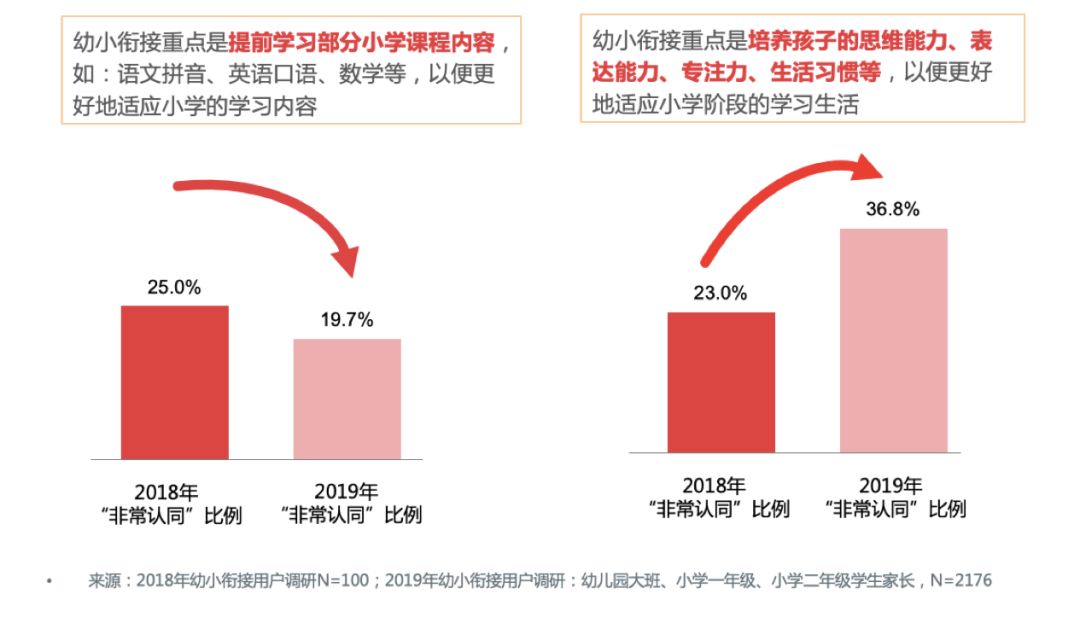 不过,从整体来看,中国家长的幼小衔接理念已经逐步转变,从单纯要求“提前学”到更关注孩子综合能力的培养。这一观念的改变,也意味着,家长对高质幼小衔接教育的需求将会逐步倒逼行业前进。