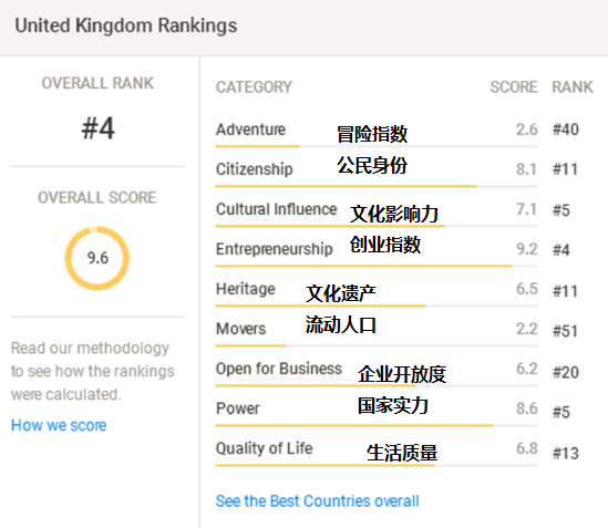 在2018 US News “世界最佳国家”综合排名中,英国位列第四,在不同的领域表现都很不错。