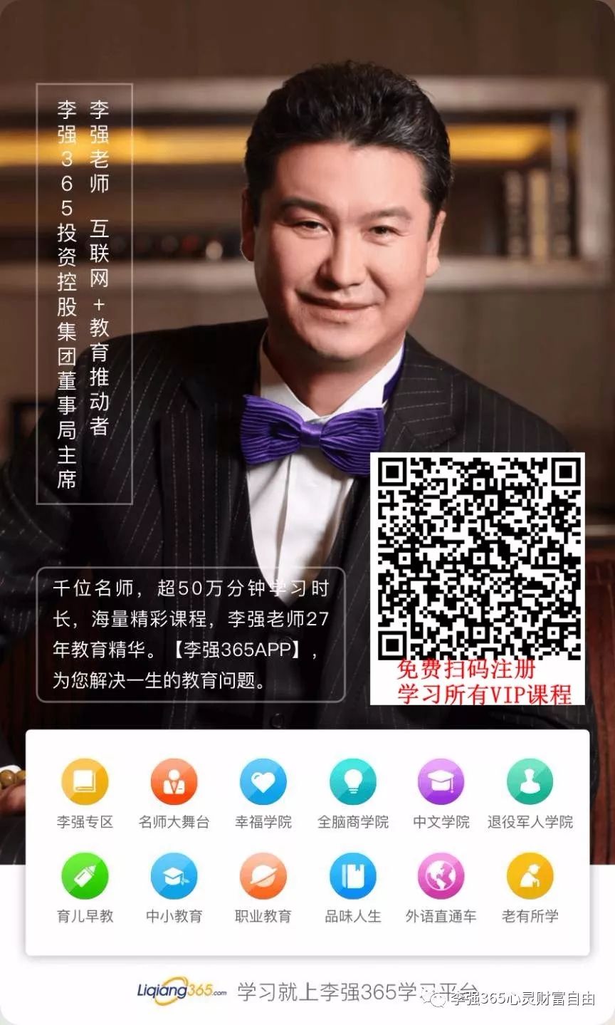 李强365学习平台,为人们提供全方位、优质的内容,帮您开启每天学习的习惯,让知识来改变我们认识的宽度与深度,开创互联网创新学习新力量,扫除知识盲区!随着公司的发展和业务的拓展,李强365学习平台会持续优化与细分。无论是普通员工还是企业家,无论是家庭主妇还是职场精英都能在其中收获自我成长!李强365拥有独创的8+N知识系统:演讲口才、婚姻家庭、子女教育、团队打造、自我成长、市场营销、人际关系、企业管理8大版块,及不断衍生的育儿早教、K12教育、走遍全球小语种、名师讲堂、名师大舞台等“N”多内容。让知识分类更加的精细化,提供人一生的学习内容。