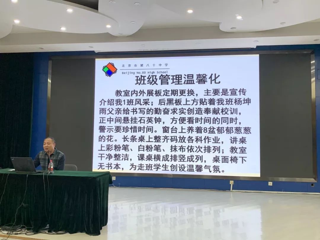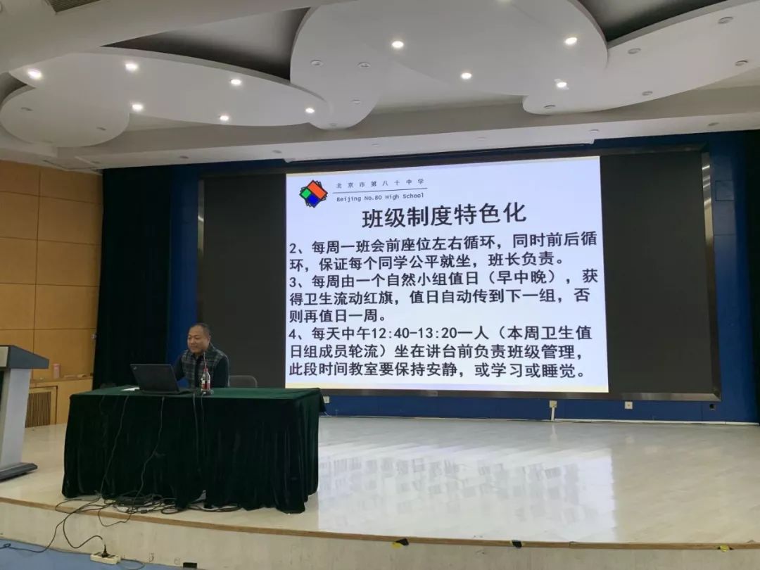 北京第八十中学伊立君老师从班级制度特色化、班级管理系列化、班级管理温馨化、班级管理成绩化四个方面为我们系统地介绍了他的带班理念。