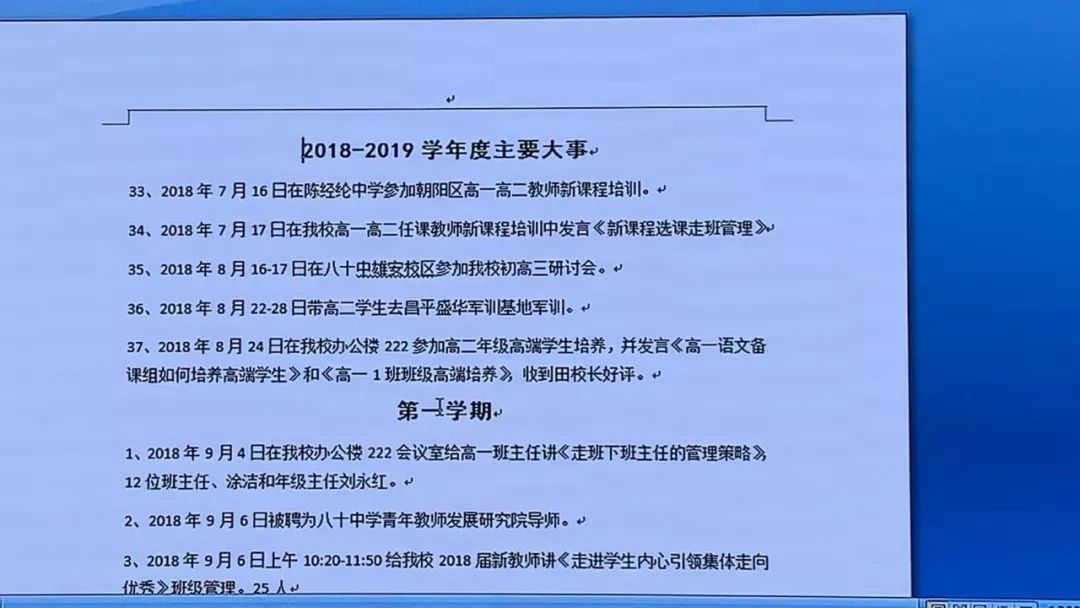 伊老师每年都会把年度大事按照时间顺序简要记录下来,包括自己担任的职、付出的努力以及最后获得的成果,一目了然。他把这些大事件展示给学生看,用自身的行动告诉学生,老师尚且会如此努力,那么你们应该怎么做呢?