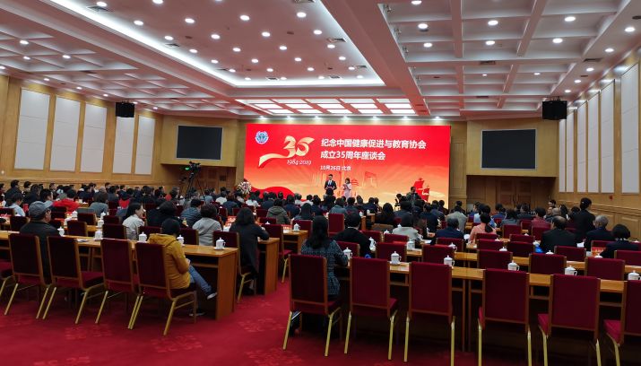 2019年10月26日, 纪念中国健康促进与教育协会成立35周年座谈会暨2019学术年会在北京隆重召开。来自国家卫生健康委相关司局,卫生健康行业协会,各省、自治区、直辖市健康教育协会、医疗机构、疾控中心、健康教育所的领导,以及协会常务理事、理事和全国各地的健康教育专家学者共200余人出席了座谈会。