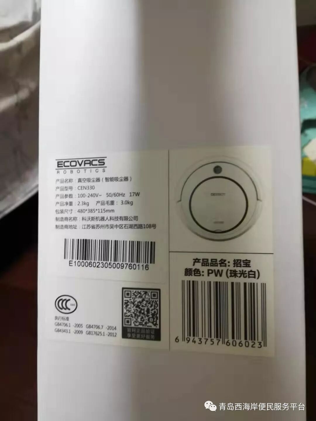 科沃斯扫地机器人,公司发的福利,原价1099元,只打开试了一下,现价600元,开发区可送货,13616487759
