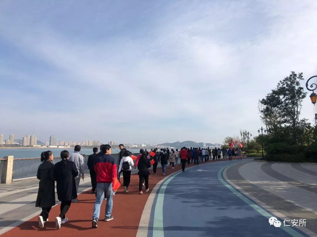 上午九时,参加徒步行活动的仁安所成员迈着轻快的步伐,精神饱满的来到珊瑚贝桥南侧步行道集合,大家欢声笑语,合影留念。