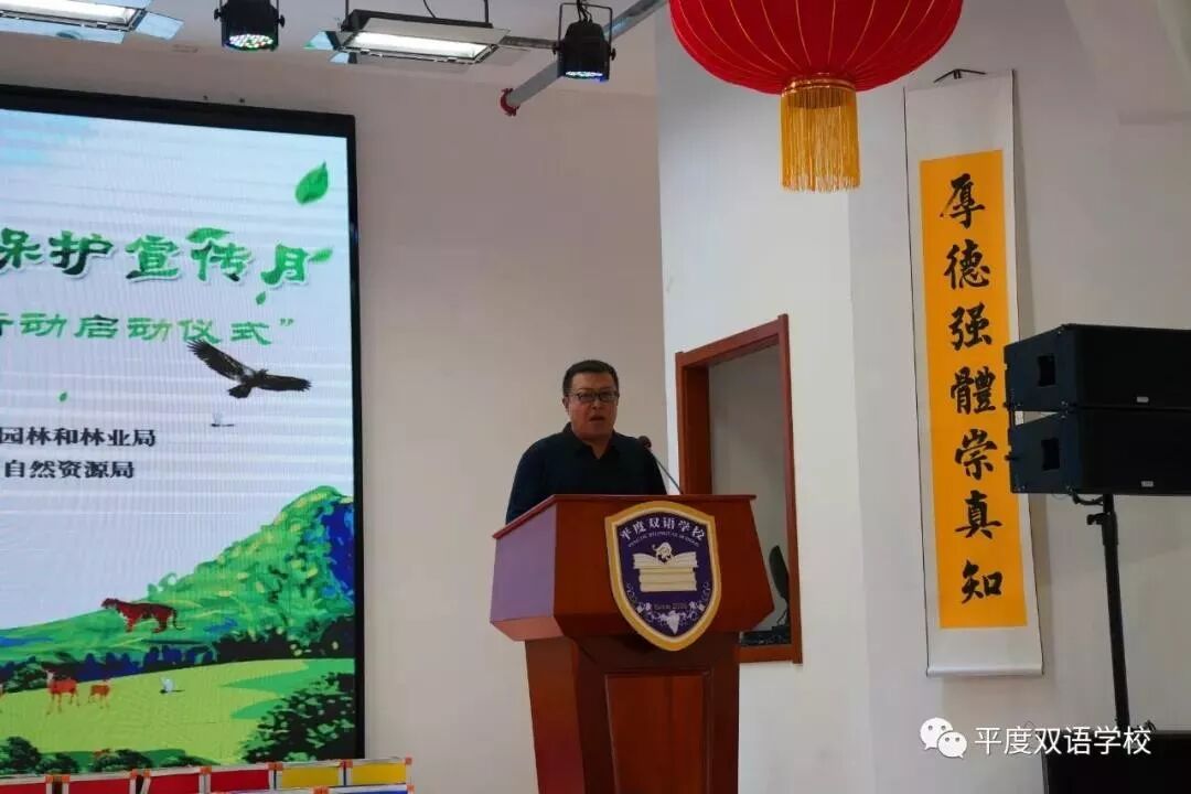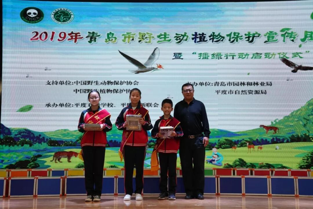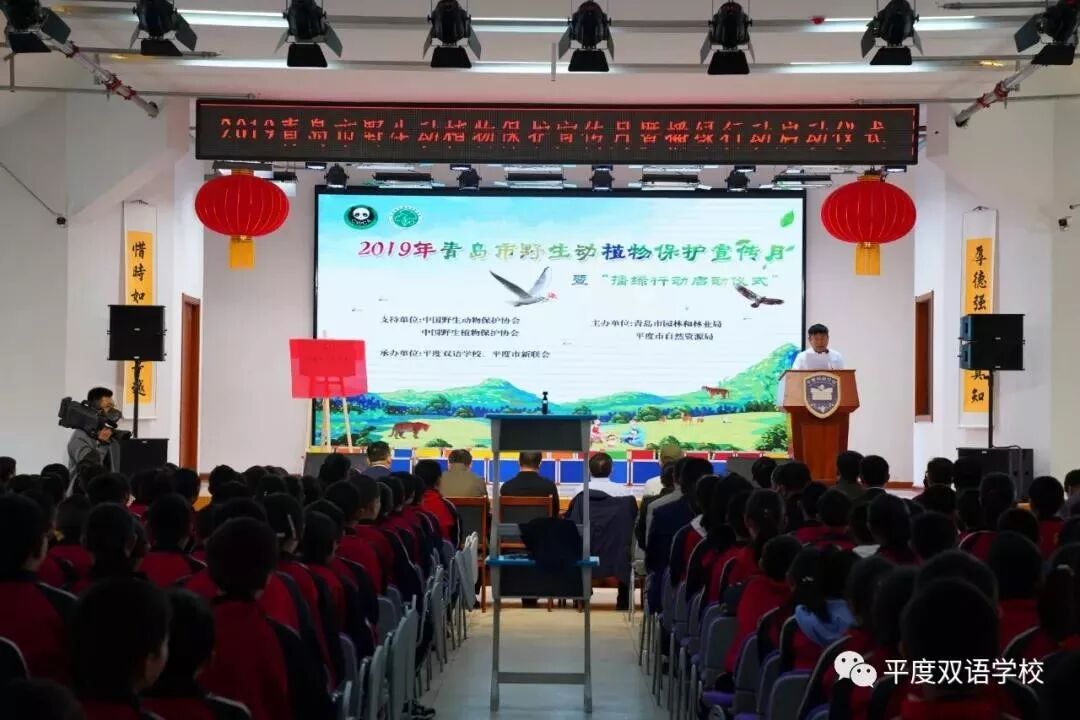 2019年10月25日上午,“2019年青岛市野生动植物保护宣传月暨播绿行动启动仪式”在平度双语学校隆重举行。作为播绿行动进校园活动的一部分,中国野生动物保护协会派员出席了本次活动、参加本次活动的还有中国野生植物保护协会科普教育委员会副秘书长徐立强、青岛市野生动植物保护站副站长王玉祥、平度市自然资源局主任科员代明召、平度双语学校校长王克峰、平度市新联会会长张瑞杰、来自平度30多个部门和乡镇代表及平度双语学校学生代表共500余人。本次活动旨在引导公众发现、欣赏自然之美,培养保护意识,普及科学知识和技能,提高公众参与野生动植物保护的积极性和能力。
