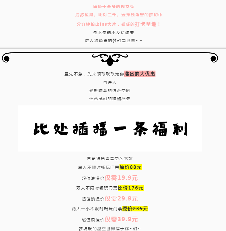 【无需预约·网红拍照打卡地】浪漫星空,随心体验!仅19.9/29.9/39.9元抢独角兽星空艺术馆单人/双人/两大一小超值套餐!