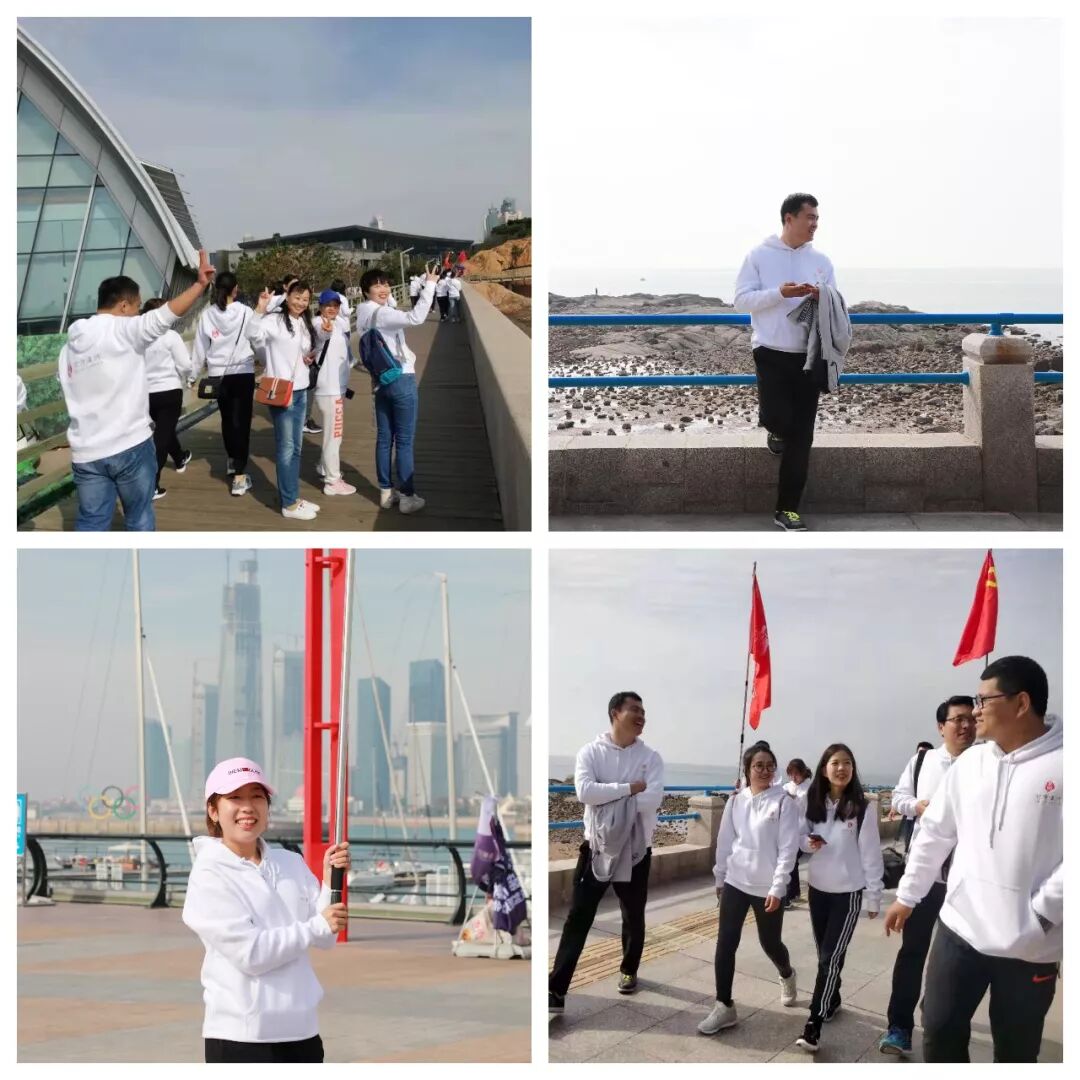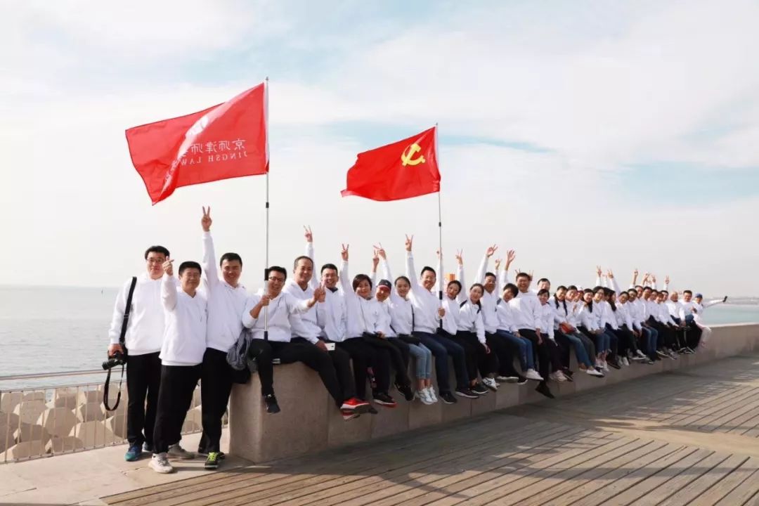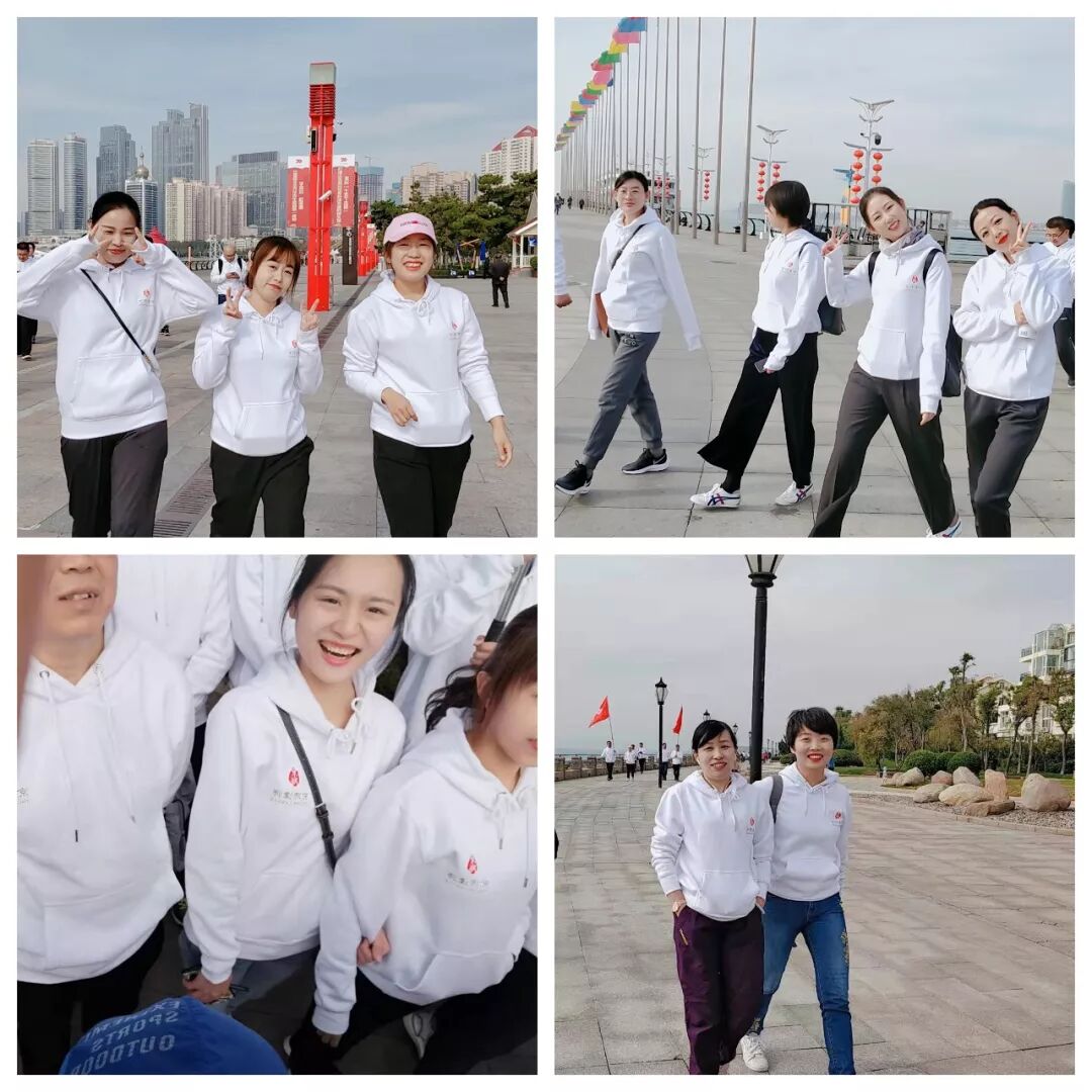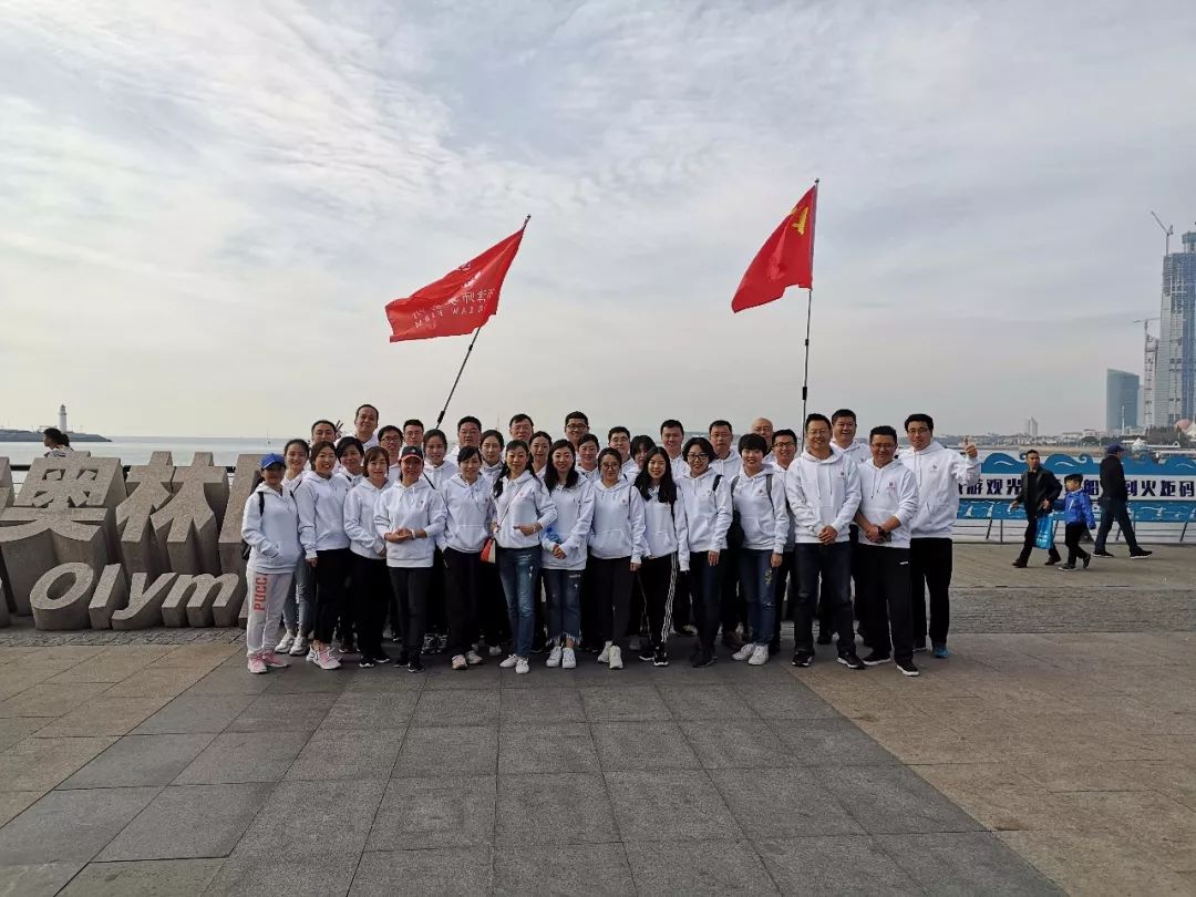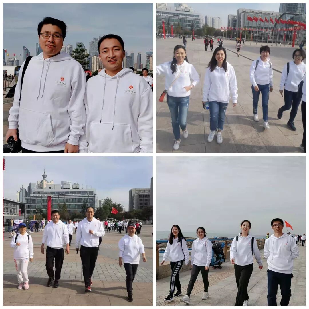 上午9时30分,参加活动的全体队员迎着旭日,准时集合在五四广场。大家精神饱满,神采飞扬,鲜红的京师旗帜在秋风中迎风招展。全体队员身着律所为此次活动统一定制的白色T恤,排列整齐的队形,形成一道独特的海边靓丽风景线。
