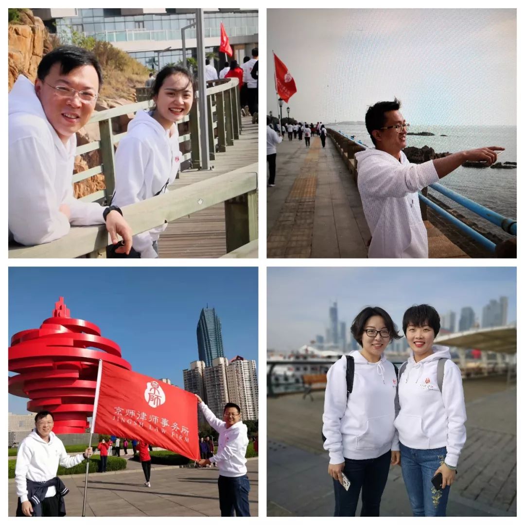 金秋送爽皆欢颜,丹牡花香菊花黄。为了庆祝新中国成立70周年,纪念律师制度恢复40周年,贯彻落实依法规范执业理念,倡导绿色健康生活方式,10月26日上午,由青岛市律师协会主办的“我们走在大路上·青岛律师金秋徒步行”活动在青岛最美海岸线五四广场举行。青岛市2 0余家律所的400余名律师参加此次徒步活动。京师(青岛)律师事务所主任张需聪号召大家走进自然、走进阳光;走出健康、走出自信;走出京师青岛律师的新活力!律所40余位律师积极响应,积极报名参与活动。