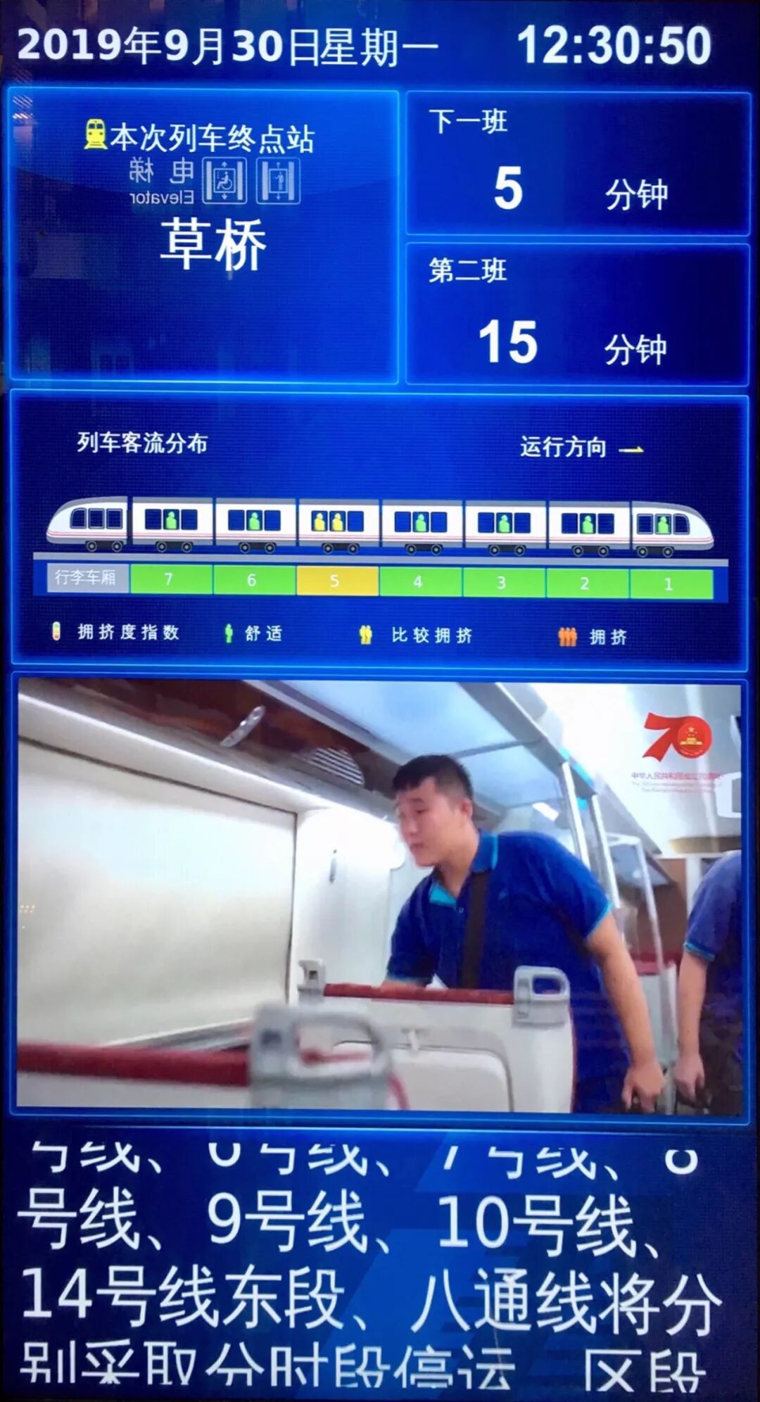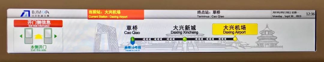 目前,大兴机场线的间隔可以满足旅客随到随走的需求。屏蔽门上装有显示屏,还可以显示下一班列车内的拥挤程度,是以前北京地铁内所没有的。