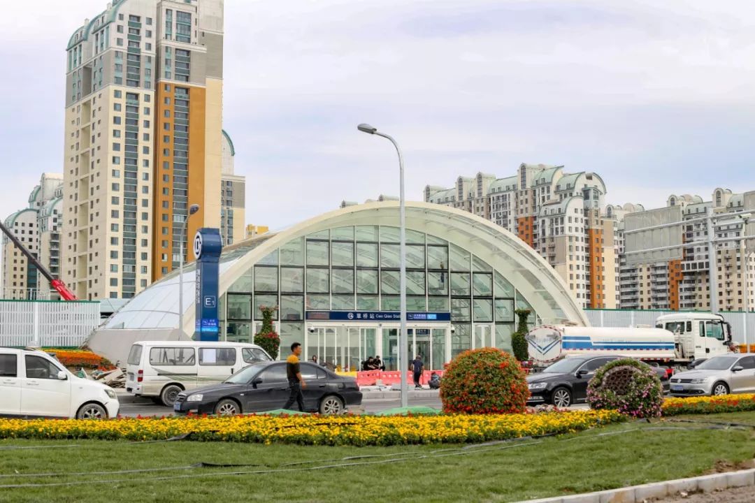 开车19分钟后,到达了草桥站。草桥站是目前大兴机场线的终点站之一,其出入口设计模仿了伦敦地铁Jubilee Line Canry Wharf站的设计,十分有趣。