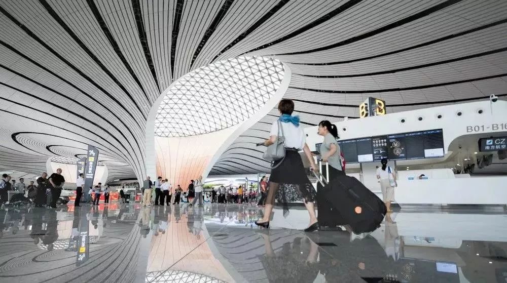 自9月25日通航以来,大兴机场以其形似金色凤凰的世界最大单体航站楼、硬核科技带来的优质服务、世界首次实现“高铁地下穿行机场”等创新点成为了中国面向世界的一张崭新名片,被誉为“新世界七大奇迹”之首。