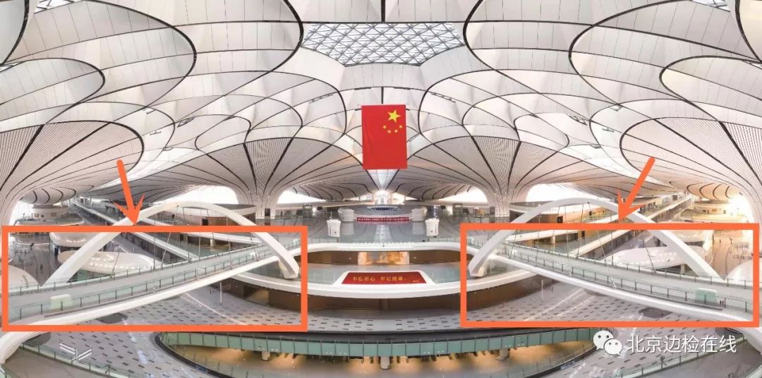 大兴机场边检出境、入境、中转现场都在安检红线以内,执勤人员可以通过隔离区内电梯通路自由切换工作场地。