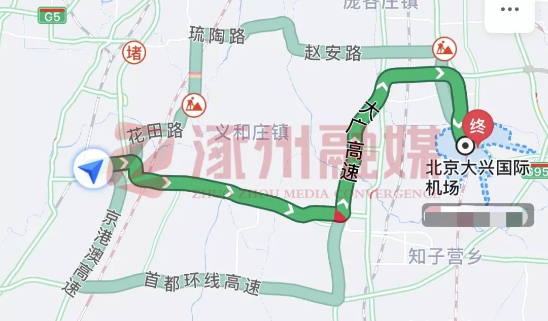 还可以选择从京港澳高速转首都环线高速再转大广高速最后到达大兴机场,全程共计77公里,但是省去了红绿灯的等待时间,到达大兴机场的时间在1小时5分钟左右,高速费共计30元。
