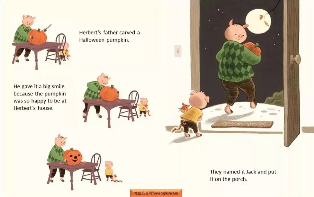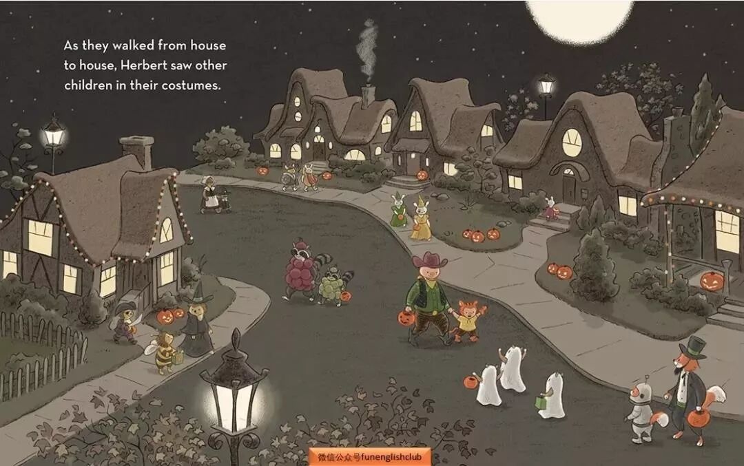 从绘本可以看出,不同寻常的装扮、南瓜灯、糖果可以算是万圣夜的三大要素啦~