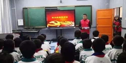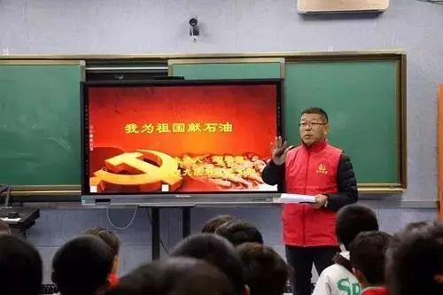参与甘肃东乡扶贫行动的职工专门准备课件,给布楞沟村小学的同学们讲述胜利油田的发展历程,让同学们深刻了解到以“苦干实干”“三老四严”为核心的“石油精神”和胜利人孜孜不倦践行“我为祖国献石油”的执著与追求。