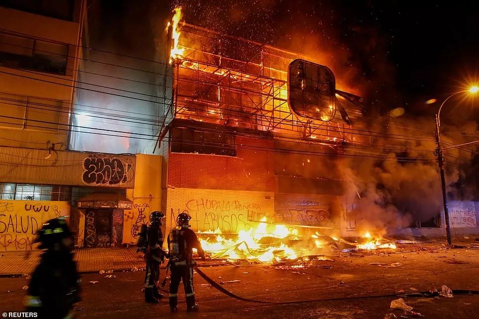 首都圣地亚哥被成千上万名暴徒占领,在全城范围内打砸抢烧,导致至少11人死亡73人受伤,