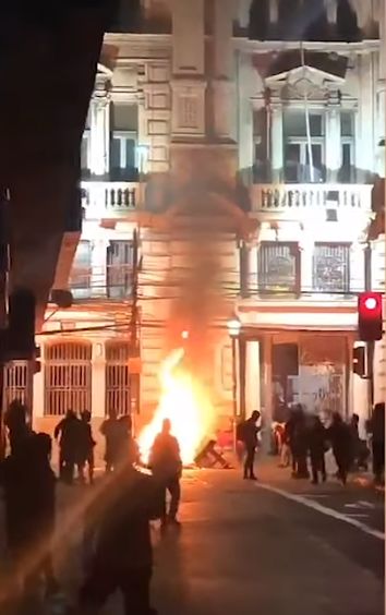 于是,他们举着智利国旗,冲上圣地亚哥的大街小巷,疯狂拦截行人和车辆,肆无忌惮地破坏公共和私人财产。