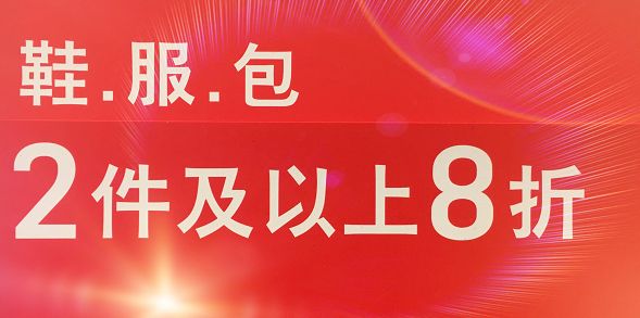 活动内容:鞋服包两件8折
