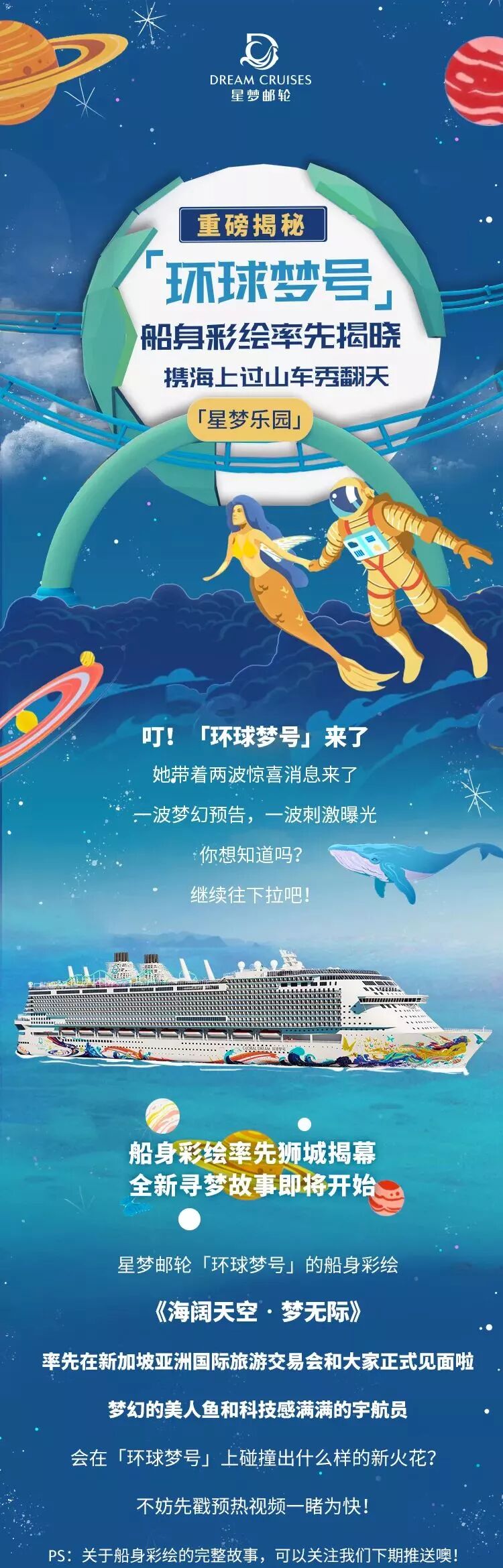 星旅邮轮丨「环球梦号」船身彩绘率先揭晓,携海上过山车秀翻天