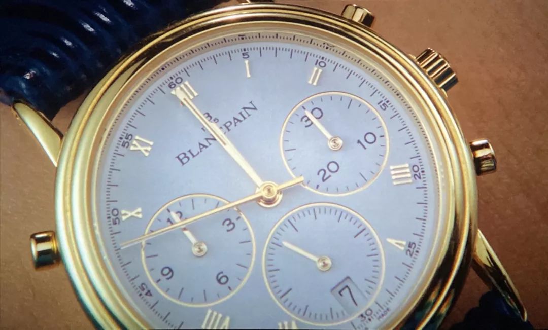 如果说惠英红佩戴的五十噚腕表是英气逼人,那影片中另一块宝珀腕表则凭借着“大气优雅”的特质给人留下了深刻印象。几组镜头腕表一闪而过,从双层表圈到罗马数字刻度以及对比表侧按钮及小表盘等细节,独特的设计让人一眼分辨出这块宝珀Villeret经典系列双追针计时码表。宝珀Villeret经典系列每一处设计简约而不简单,令其永不过时。