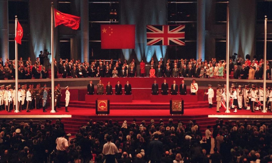 在影片《我和我的祖国》中,就重现了1997年7月1日香港脱离英国殖民统治,开始实行“一国两制”的历史时刻。
