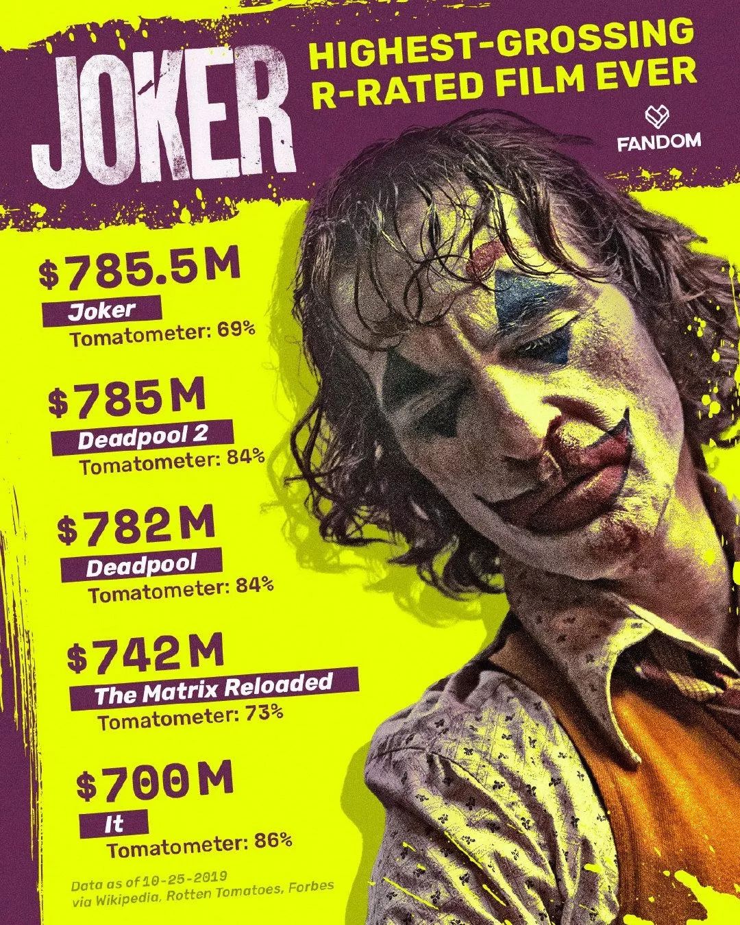 这是漫该片的胜利!DC《小丑》打破R级电影全球票房纪录,晋升R级片全球影史票房冠军。