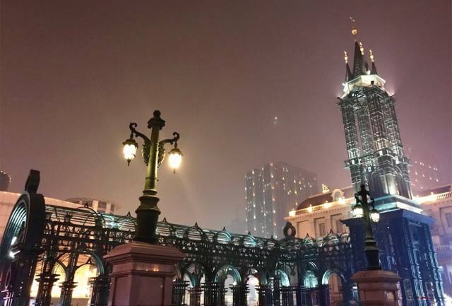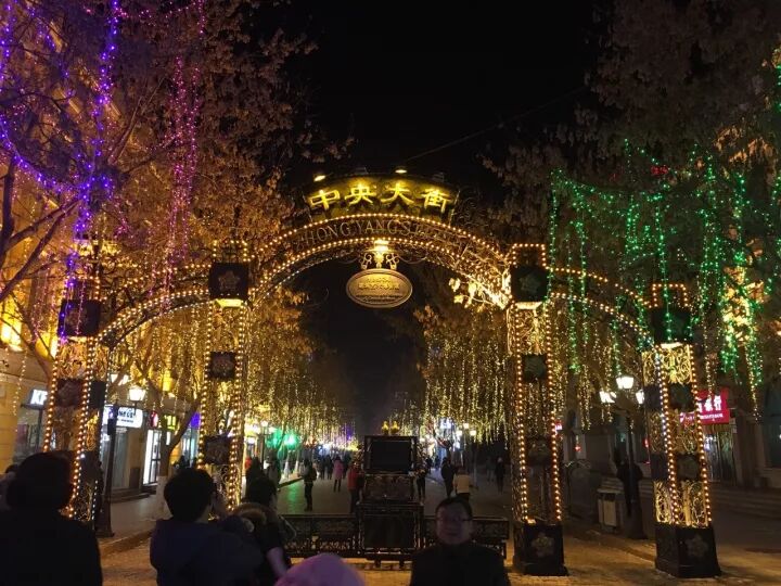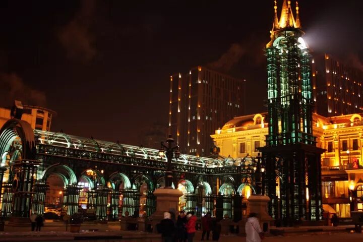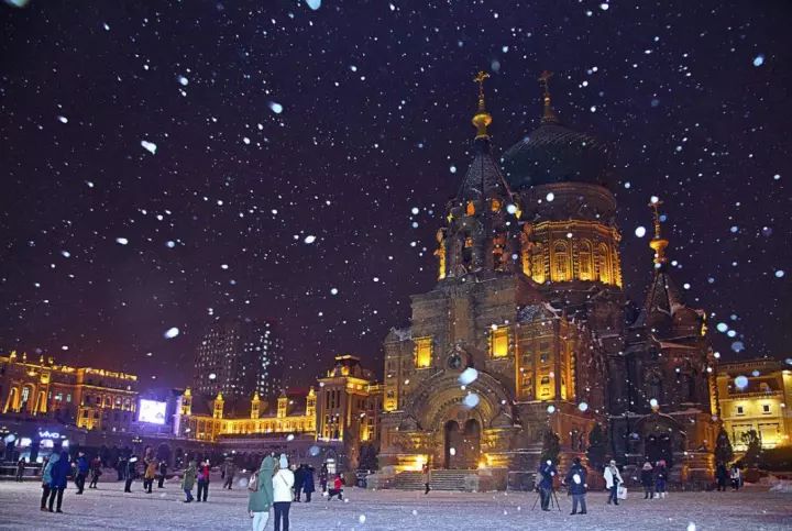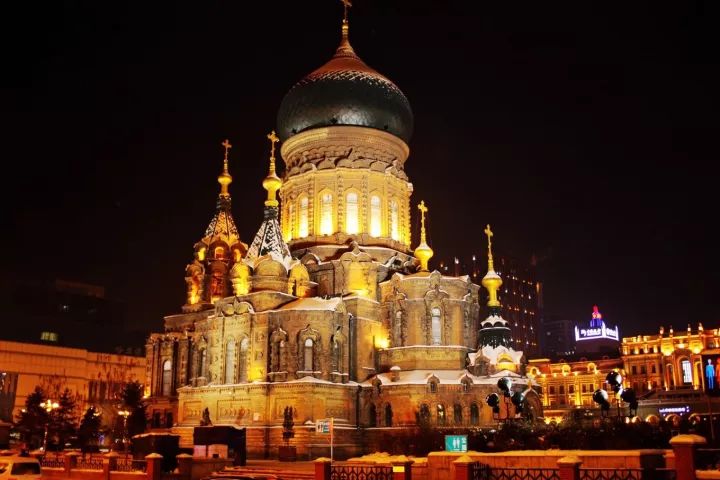 高高的纬度,冬季下午4点天就开始黑,夜幕下的哈尔滨,灯火通明,金碧辉煌,俨然一个“东方小巴黎”。
