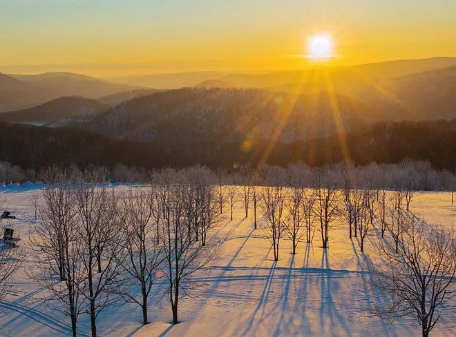 傍晚时雪谷的景色最为迷人,夕阳西下、炊烟袅袅的画面,还原了东北最原始的村庄景象,如同一幅中国水墨画。