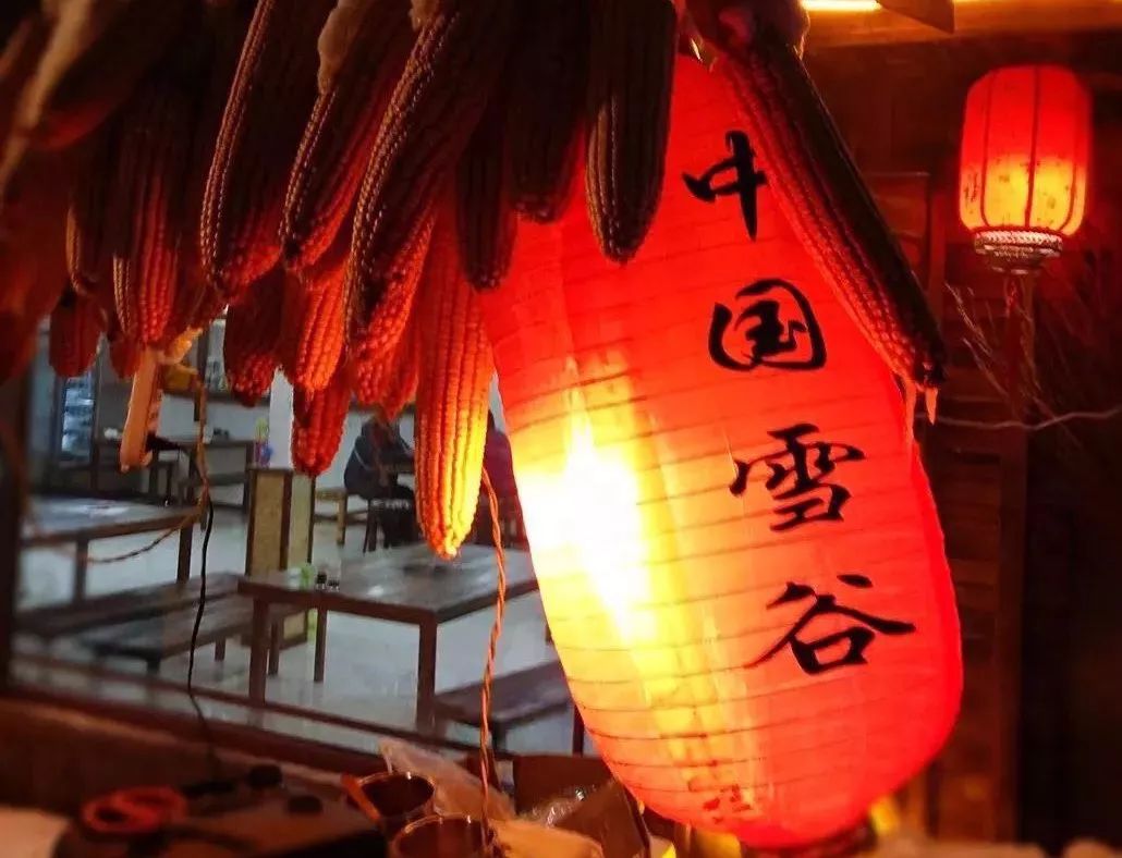 门前围着篱笆、栅栏,就地取材是雪谷民居的特色,玉米棒和红灯笼是雪谷的标配。
