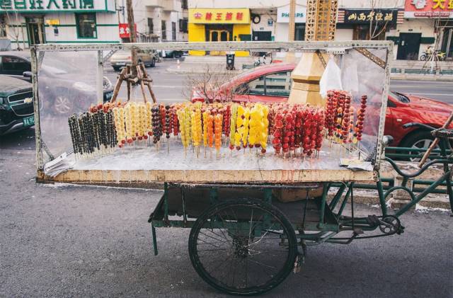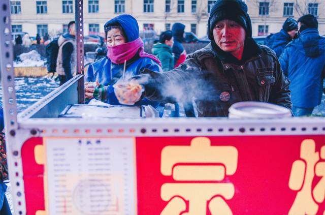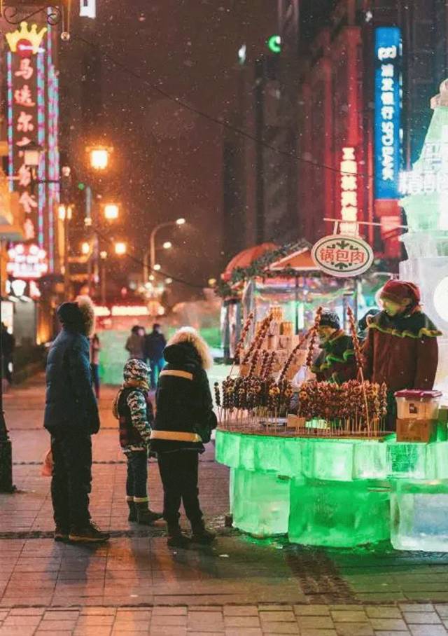 走在零下二十度的天气,买一根奶香十足的马迭尔冰棍,越冷越有滋味。或是带上一支“冰”糖葫芦,吃一份正宗的东北烤冷面,都是中央大街的正确打开方式。